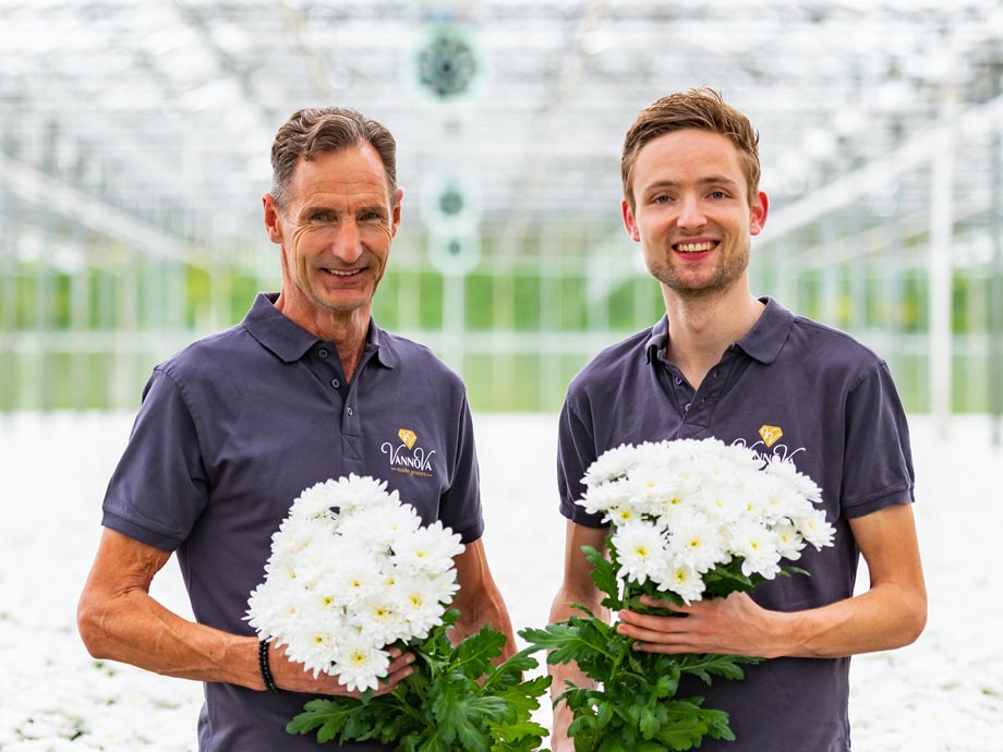 Die oplossing zocht René bij collega-telers van onder andere telersvereniging VannoVa. ‘In de chrysantenteelt hebben we o.a. te maken met Japanse roest. Ervaring leert dat met de juiste inzet van de Airmix de Japanse roest vrijwel niet optreedt. Zo krijg je links en rechts wel advies en je haalt ook het een en ander uit vakbladen’, zegt René, verantwoordelijk voor de teelt. Inmiddels is het bedrijf van René en André versterkt met de volgende generatie, Bart.