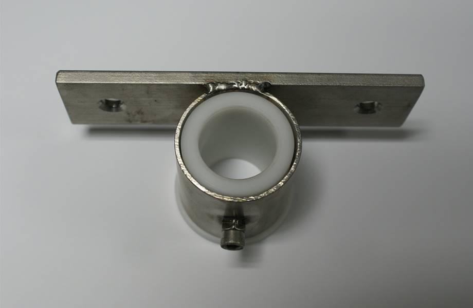 Wij hebben een aanpassing gemaakt waardoor u de asgeleiding (zie foto) los kan maken van het frame. Hierdoor kan de as losgekoppeld worden en hoeft de asgeleiding niet losgekoppeld te worden van de mengbak.