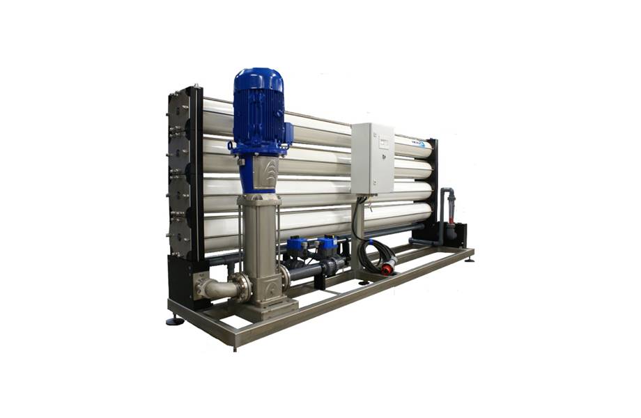 Bij ons laatste project voor een vakantiepark kregen we echter bronwater aangeleverd met een EC-waarde van 31 mS/cm. Ter vergelijking: zeewater heeft over het algemeen een EC-waarde tussen 50 en 55. Om aan de gevraagde waterkwaliteit te kunnen voldoen, moest in dit geval dus een tweetrapssysteem worden gebouwd.