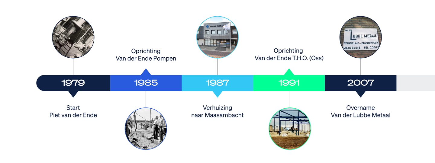 In 1985 richtte Piet van der Ende het bedrijf op. Hij begon met het repareren en reviseren van waterpompen voor de glastuinbouw, maar al snel volgde de verkoop van nieuwe pompen en aanverwante artikelen. Naast deze meer traditionele producten, werden ook de eerste innovatieve producten gelanceerd. Door aanhoudende groei, nam het toenmalige bedrijf in 1987 haar intrek in het pand aan de Maasambacht te Maasdijk.